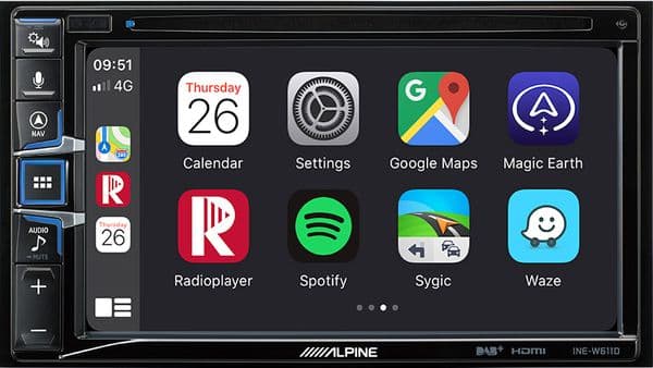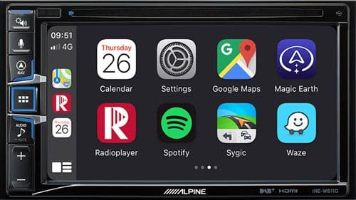 DAB FM AM Radio 6.5" WVGA wide screen Motorhome and commercial EU navigation built in CarPlay Android Auto Bluetooth hands-free and audio streaming DVD/CD playback MP3/WMA/AAC DivX compatible iPod /iPhone control FM radio Rear HDMI Input 2 x USB rear connection - supports MP3/WMA/AAC/DivX 3 x 4v Pre outs AV Input Reverse camera Connection with guideline adjustment Steering wheel remote control compatible 9 band Parametric High and low pass filters 4x45w