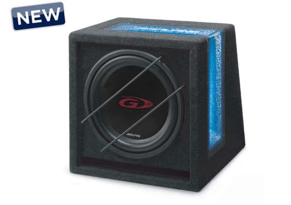 10" 500 watt Sub with Alpine's own Box Trimmed & blue lighting with acrylic Window 4 ohms Features & benefits of the Alpine SBG-1044BR Acrylic window with blue illumination 10" Type-G Subwoofer Peak Power: 500W RMS Power: 150W Box Size: 350 x 360 x 285 /395 mm