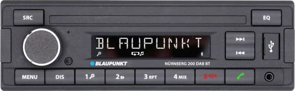 MECHLESS DAB/BLUETOOTH RDS tuner, DAB+ tuner, FM (RDS), AM Bluetooth hands-free function with built-in microphone Playback formats: MP3, WMA Front USB, front Aux-In Fast USB reading Selectable display modes (file, folder, title, artist, album and time) 4 x 50 Watt max. Performance, 2-channel preamp X-Bass, sound presets (flat, rock, pop, classic)
